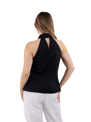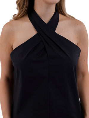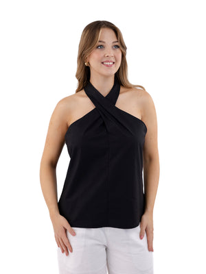 Elevate your wardrobe with the Kendra Black Top, crafted from soft cotton for all-day comfort. Its sleek black fabric is complemented by a sophisticated criss-cross neckline, adding a subtle yet striking detail to your look. Perfect for both casual and dressier occasions, this top combines elegance with effortless style.